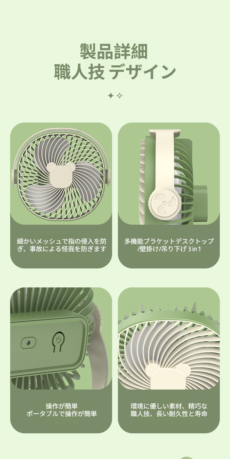 小型扇風機 壁掛け式 卓上多機能ライトファン USB充電式ファン クリエイティブギフト